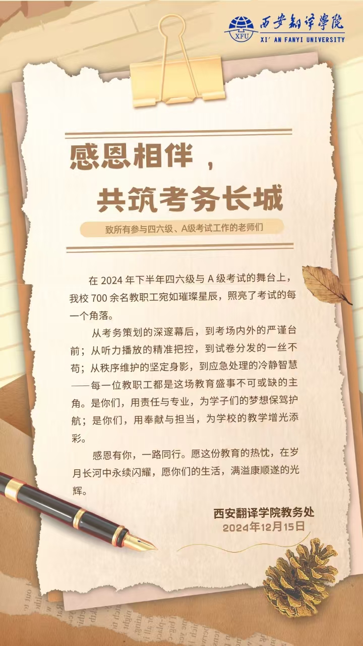 2024年下半年全国大学英语四六级考试、全国高等学校英语应用能力考试(A级)和2024全国高校日语专业八级统测分别于12月14日、15日在我校举行。本次考试,我校考点报名共计10360人次,累计348个考场。