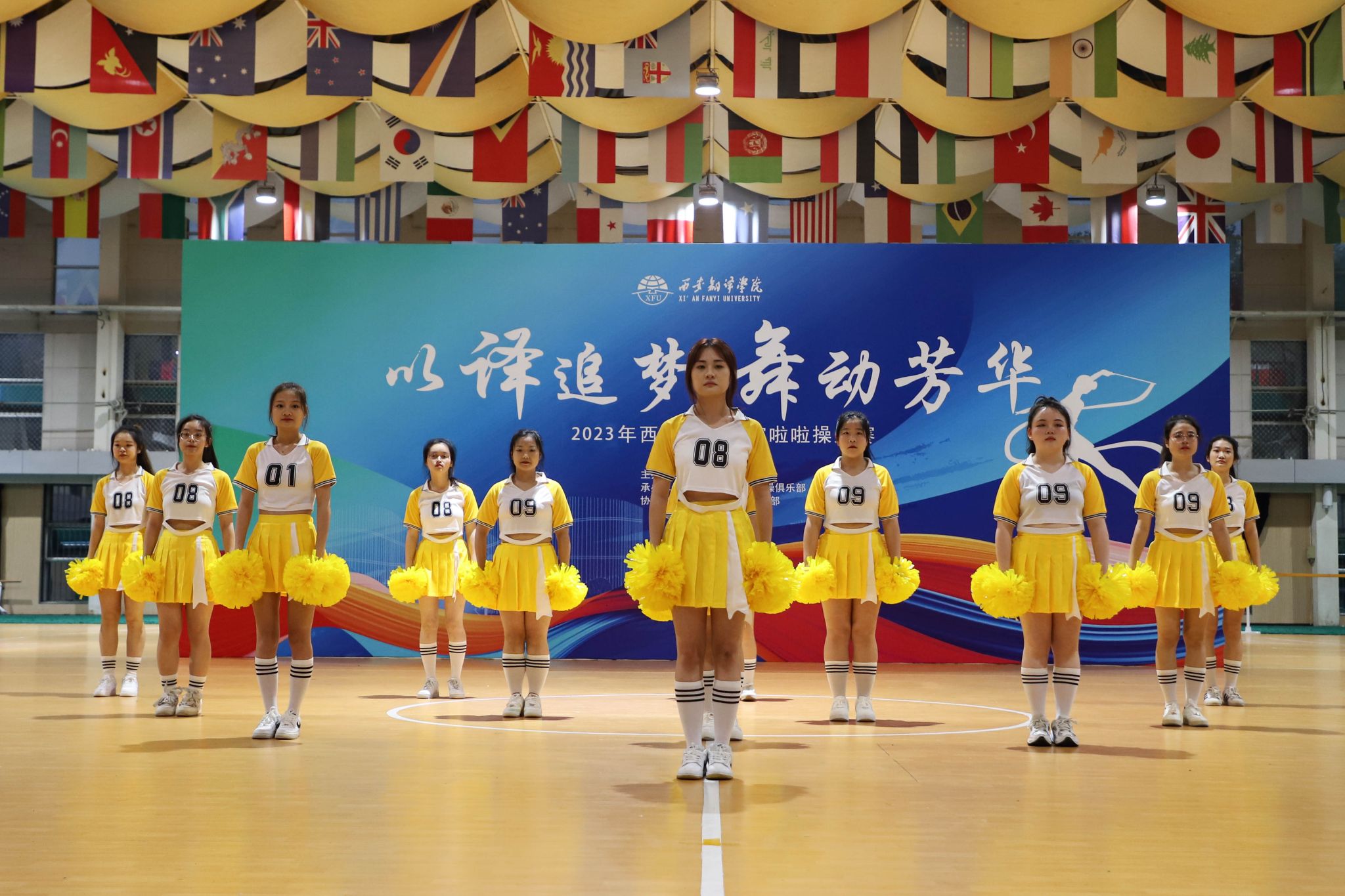 5月31日下午,由西安翻译学院体育工作委员会主办,西译健美操俱乐部、啦啦操俱乐部承办,各二级学院学工部协办的“以译追梦,舞动芳华”2023啦啦操大赛在风雨操场举行。校长崔智林出席。团委及英文学院、体育学院、护理与康复学院、亚欧语言文化学院部分领导及师生代表观看比赛。