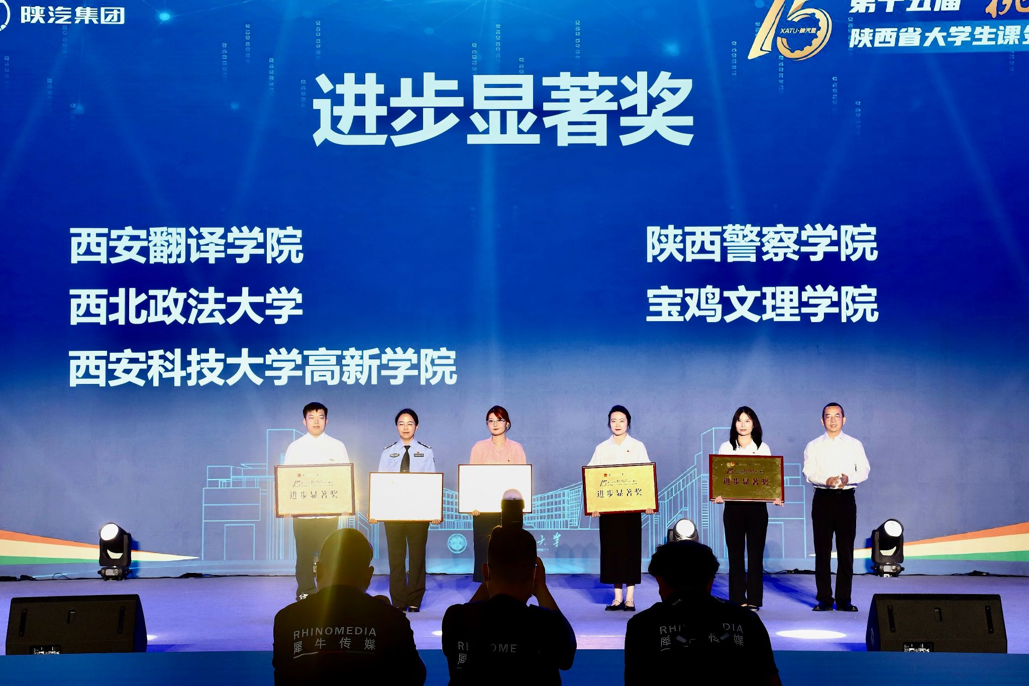 在5月24日闭幕的第十五届“挑战杯”陕西省大学生课外学术科技作品竞赛颁奖典礼上,我校报送的12件作品全部进入现场决赛,获特等奖4项,一等奖6项,二等奖2项,总分900分,位列全省第六。我校在此项赛事中,连续六年持续突破。继2022、2024年两次捧得“小挑”优胜杯后,此次首次捧得“大挑”优胜杯并获“进步显著奖”,位居同类院校第一,创造了校参赛史上的里程碑式突破。