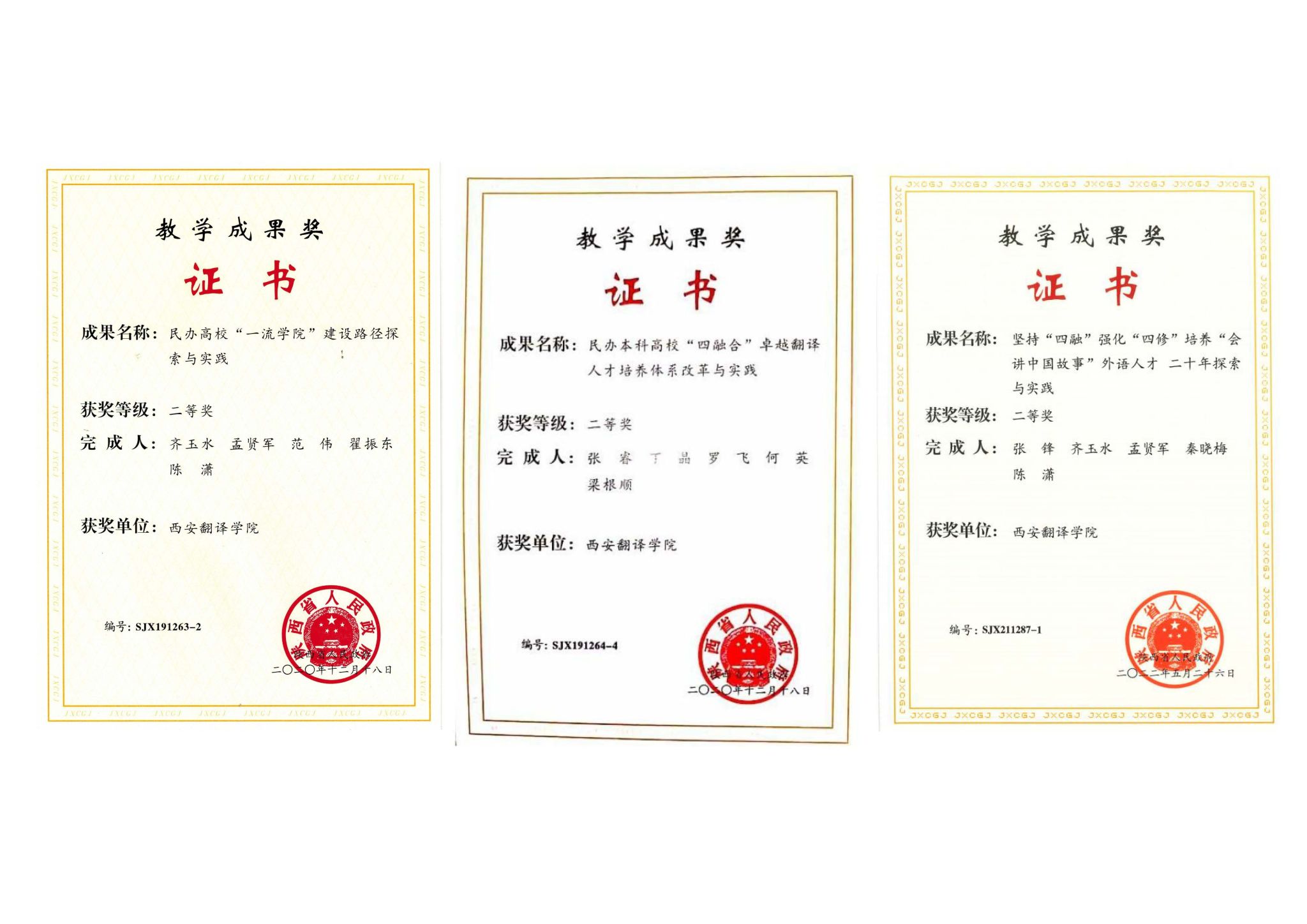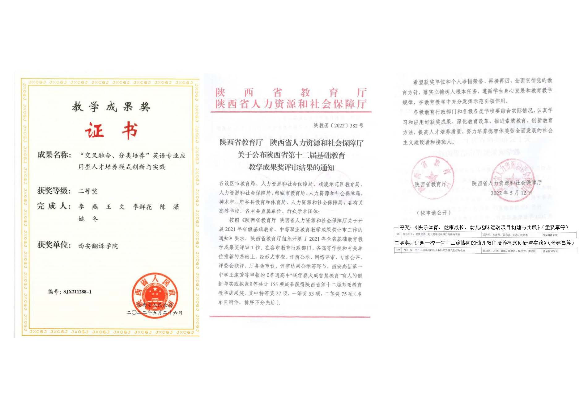 陕西省教育教学成果奖每两年评审一次,是全省教育教学研究和实践领域颁授的最高奖项,是评价高校人才培养工作水平和教育教学改革成果的核心指标,代表了全省教育教学成果的最高水平。自2007年起,我校连续斩获8届陕西省教育教学成果奖,累计获奖项目12项,这是我校教师经过多年努力取得的创造性成果,也充分体现了学校教育教学改革工作的重大进展。