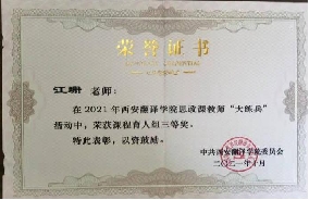江珊老师在2021年西安翻译学院思政课教师大练兵活动中,荣获课程育人组三等奖。