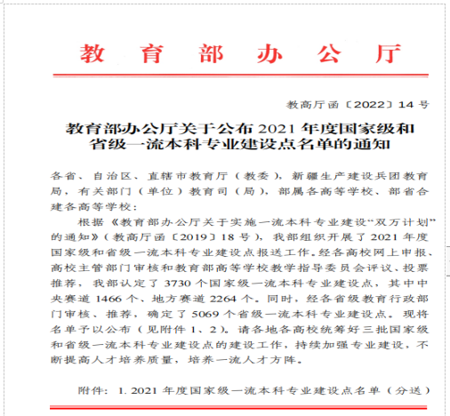 近日,教育部印发《关于公布2021年度国家级和省级一流本科专业建设点名单的通知》(教高厅函〔2022〕14号),我校汉语言文学、法语2个专业入选陕西省一流本科专业建设点。截至目前,我校有翻译、国际经济与贸易、英语3个国家级一流专业和日语、商务英语、汉语国际教育、电子商务、环境设计等11个陕西省一流专业。