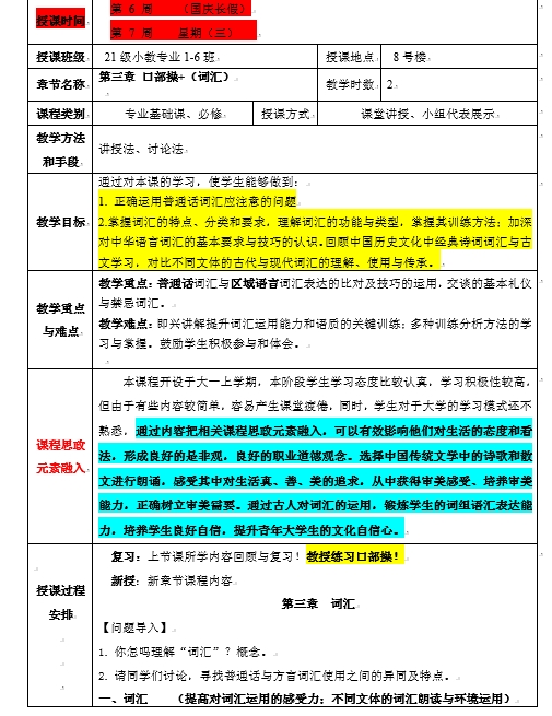 我校教育学院学前教育、小学教育专业从培养方案、教学计划、课程大纲、教案设计等方面开展了一系列教学工作,通过将思政引入到课程教学,激发了学生的家国情怀、民族自豪感、社会责任感、专业兴趣度,达到了教书育人的教育目标。