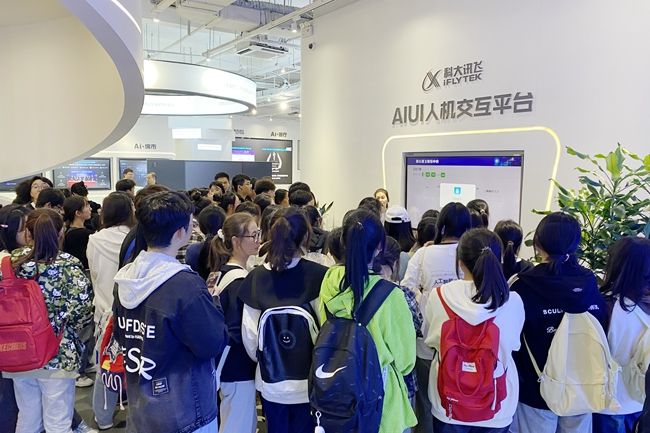 在讯飞人工智能展厅,同学们从走进科大讯飞,AI在教育、医疗、智慧城市、人才培养等行业赛道的具体应用,讯飞语音合成技术的发展等三方面,做了详细了解,并体验了具体的功能演示。随后,同学们根据自身兴趣,体验了不同的人机交互系统,并就相关使用说明及疑问与讲解员作了现场互动交流。